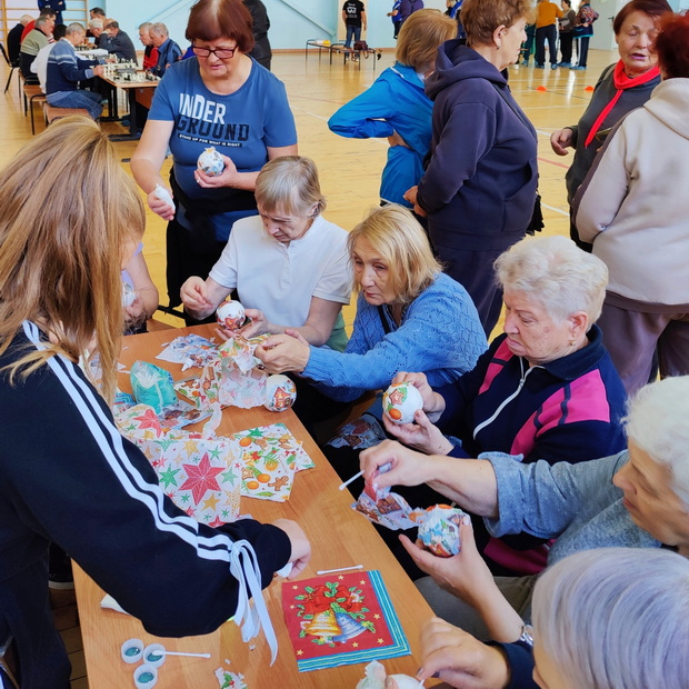 Для всех желающих были организованы игры в домино, шашки, лото и творческий мастер-класс «Декупаж новогодних шаров». Кроме того для участников был подготовлен музыкальный подарок от хореографического коллектива «Ювента» Алексинской детской школы искусств.
